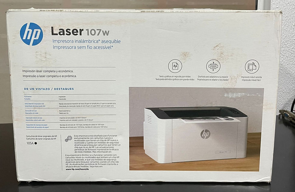Impressora HP Laserjet Mono 107W Wireless (110v/USB) - Branco